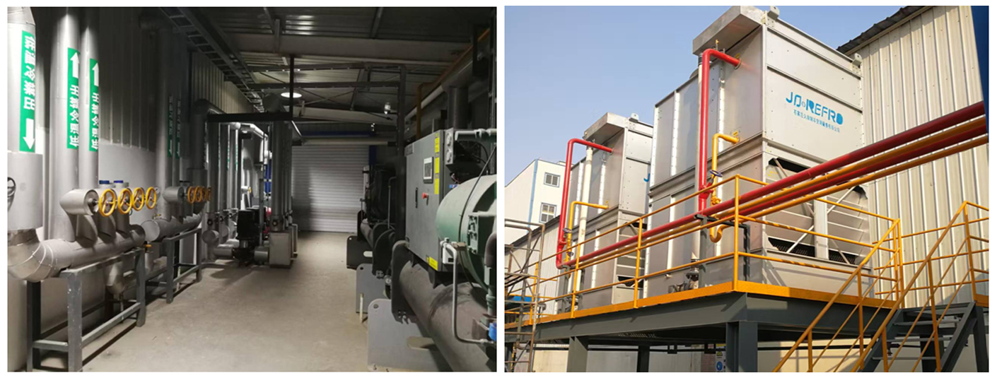 我公司为益海粮油公司承建了花生冷库制冷系统,库容3000吨。以及鲜湿挂面生产用“集装箱式冷水机组”和“蛋液冷库”等诸多制冷项目